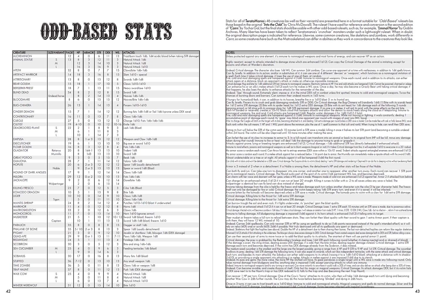 | Tags | becmi, bestiary, bx, cairn, Dungeons & Dragons, Monsters, odd, ose, OSR, Tabletop role-playing game |